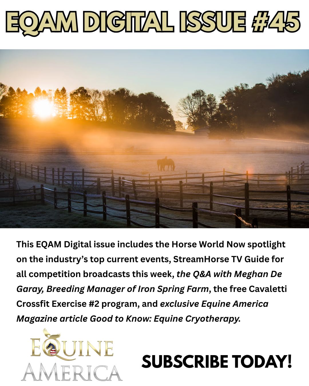 In celebration of the Year of the Fire Horse, Equine America Magazineโthe #1 eventing magazine in the worldโis igniting the new year with an exclusive 30% off EQAM Digital subscriptions for your first three months. Enjoy your first issues for just $3.49/month during ๐ฅ limited-time offer! OVER 100 ISSUES PER YEAR! Click here to subscribe!