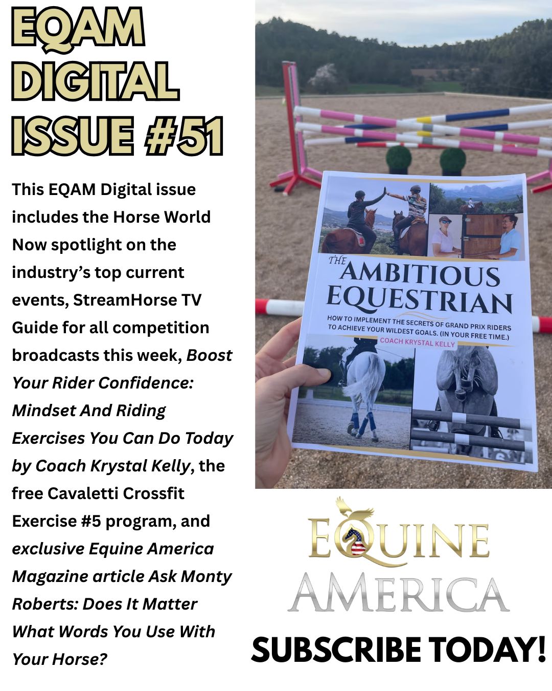 In celebration of the Year of the Fire Horse, Equine America Magazineโthe #1 eventing magazine in the worldโis igniting the new year with an exclusive 30% off EQAM Digital subscriptions for your first three months. Enjoy your first issues for just $3.49/month during ๐ฅ limited-time offer! OVER 100 ISSUES PER YEAR! Click here to subscribe!